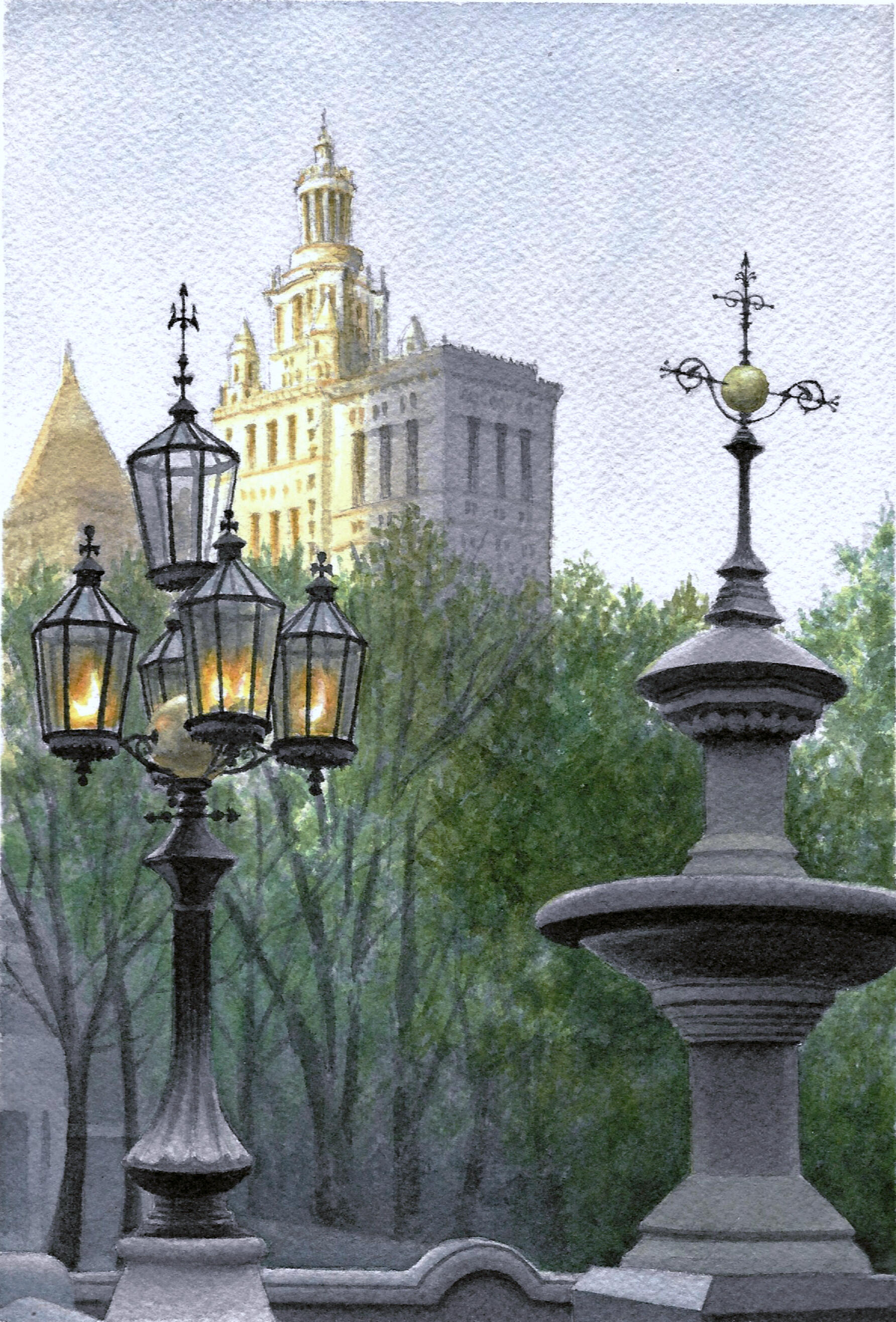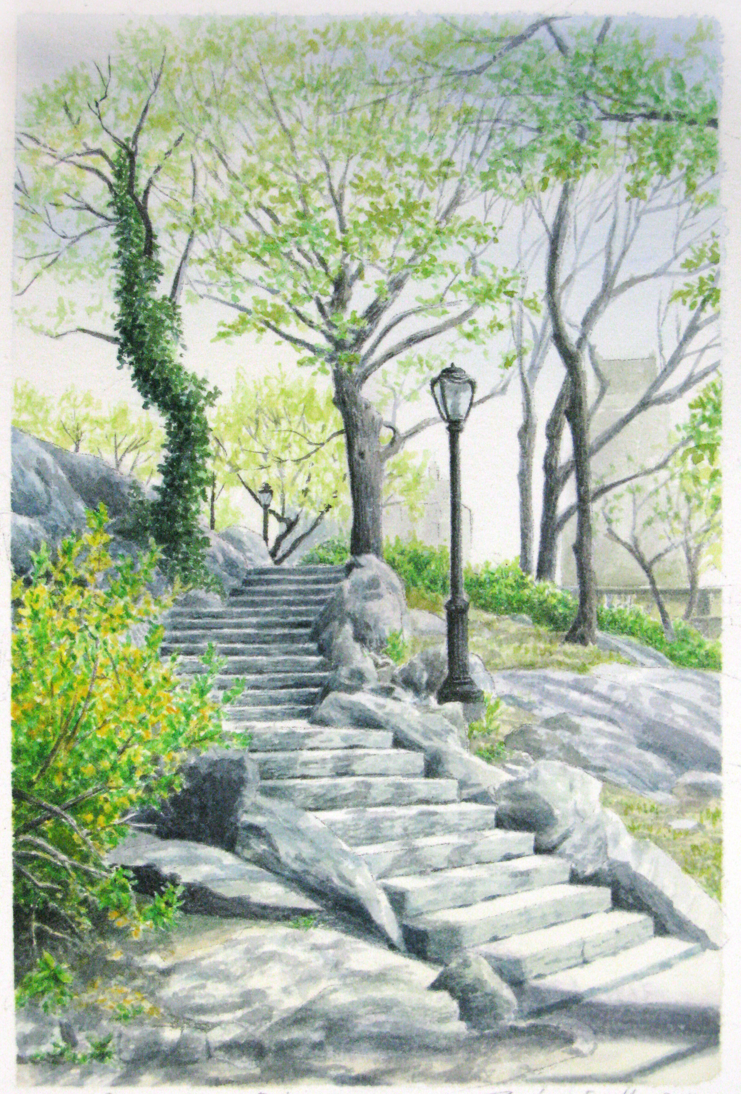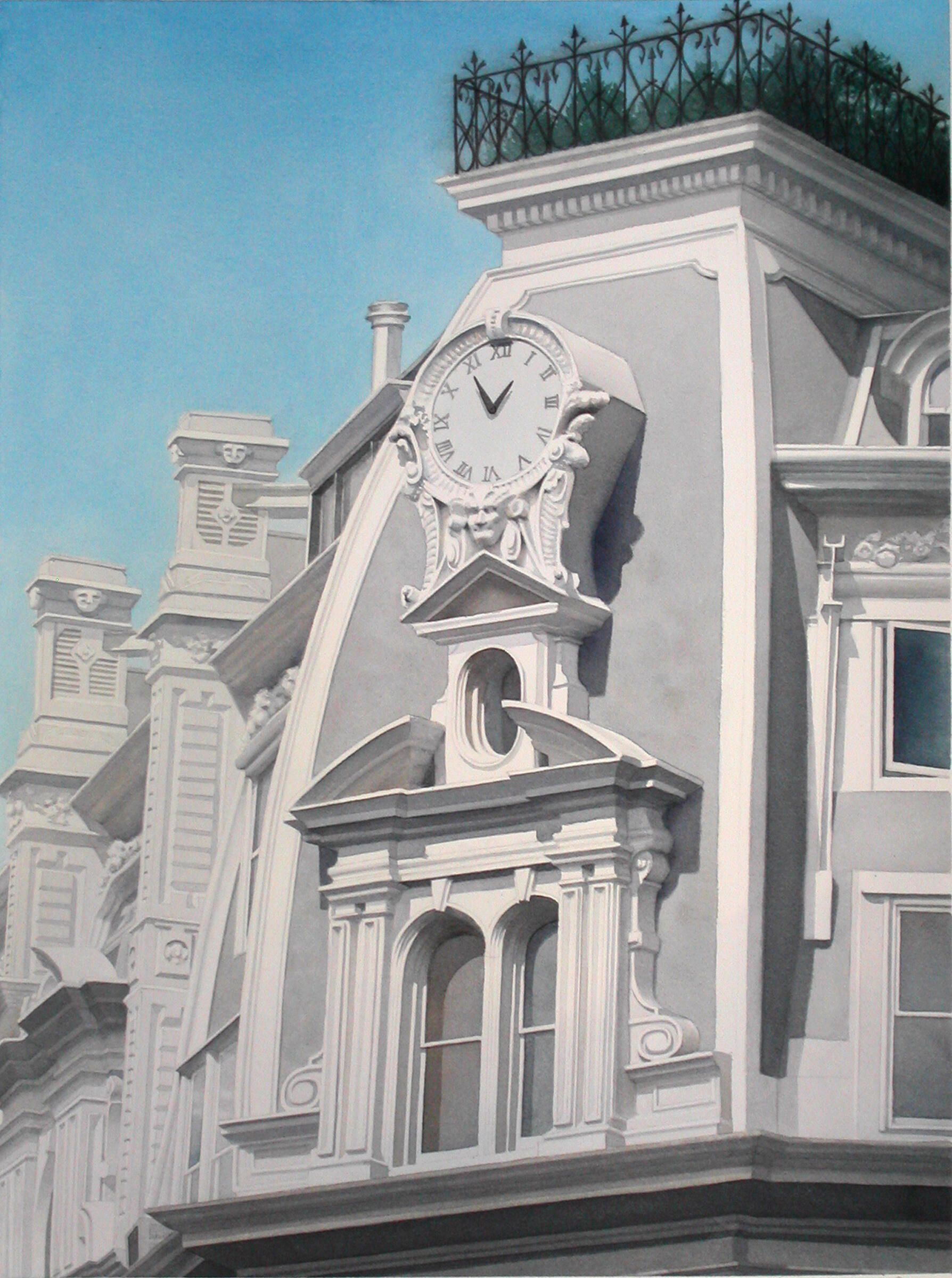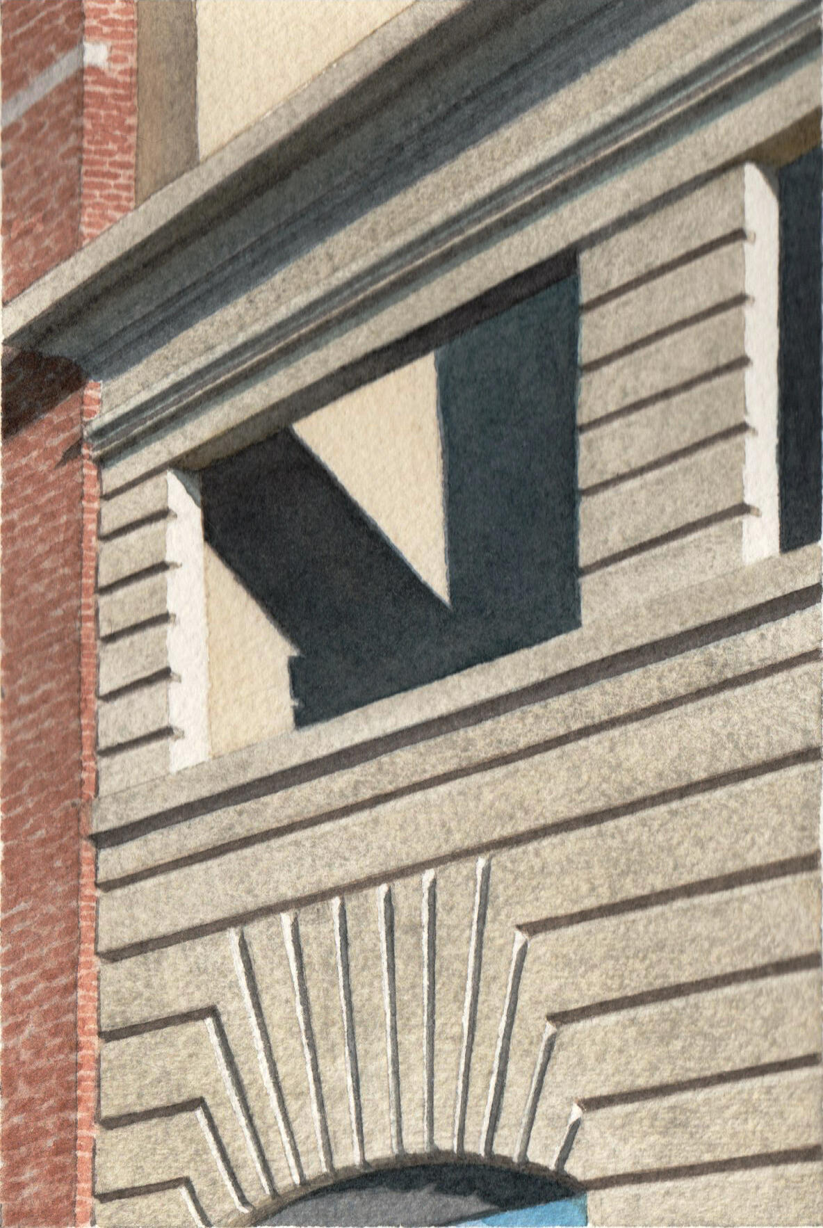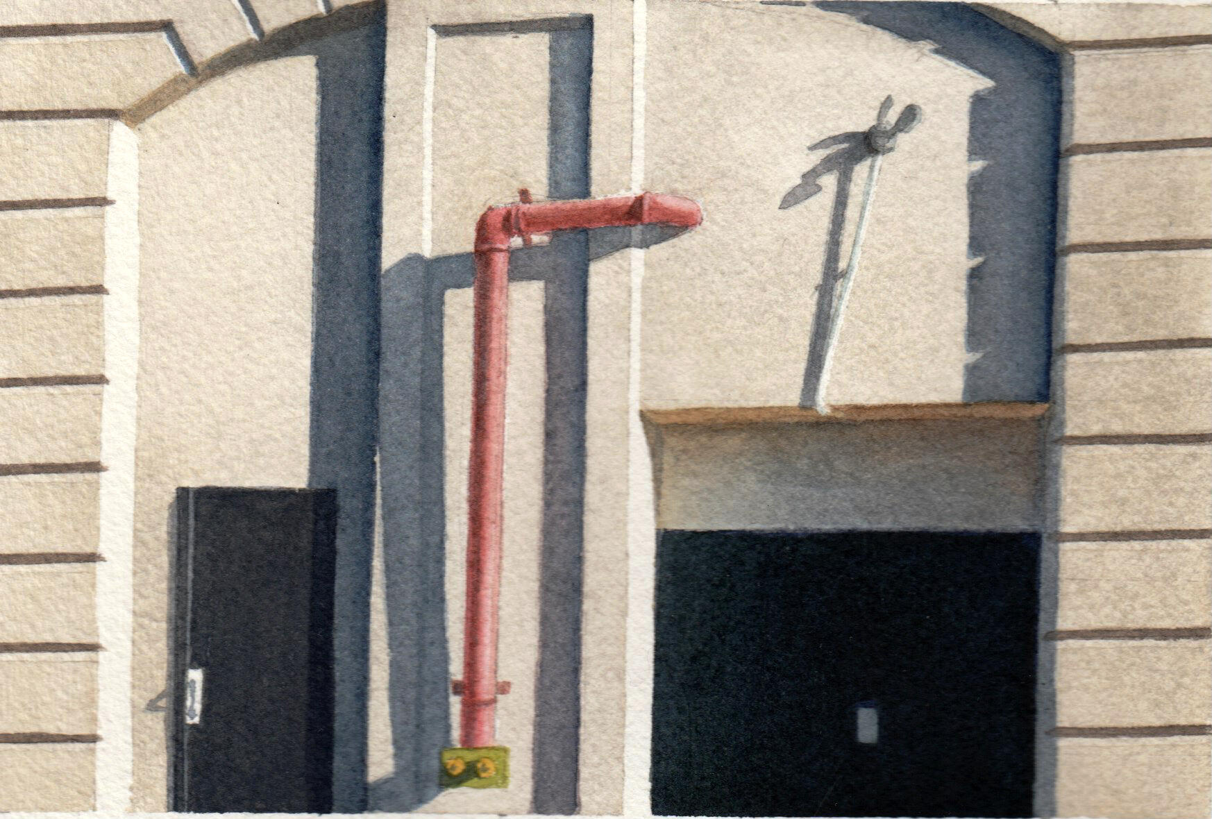 My work explores the overlooked beauty of urban life—architectural details, fleeting light patterns, reflections, and geometric forms that reveal deeper truths about existence and perception. I distill experience into its essential elements. The subjects I choose—architectural ornaments, geometric light patterns, window reflections, staircases—embody contradiction: abstract yet calculated, fleeting yet eternal, physical yet spiritual. These elements exist in beautiful balance, much like the watercolor medium itself.