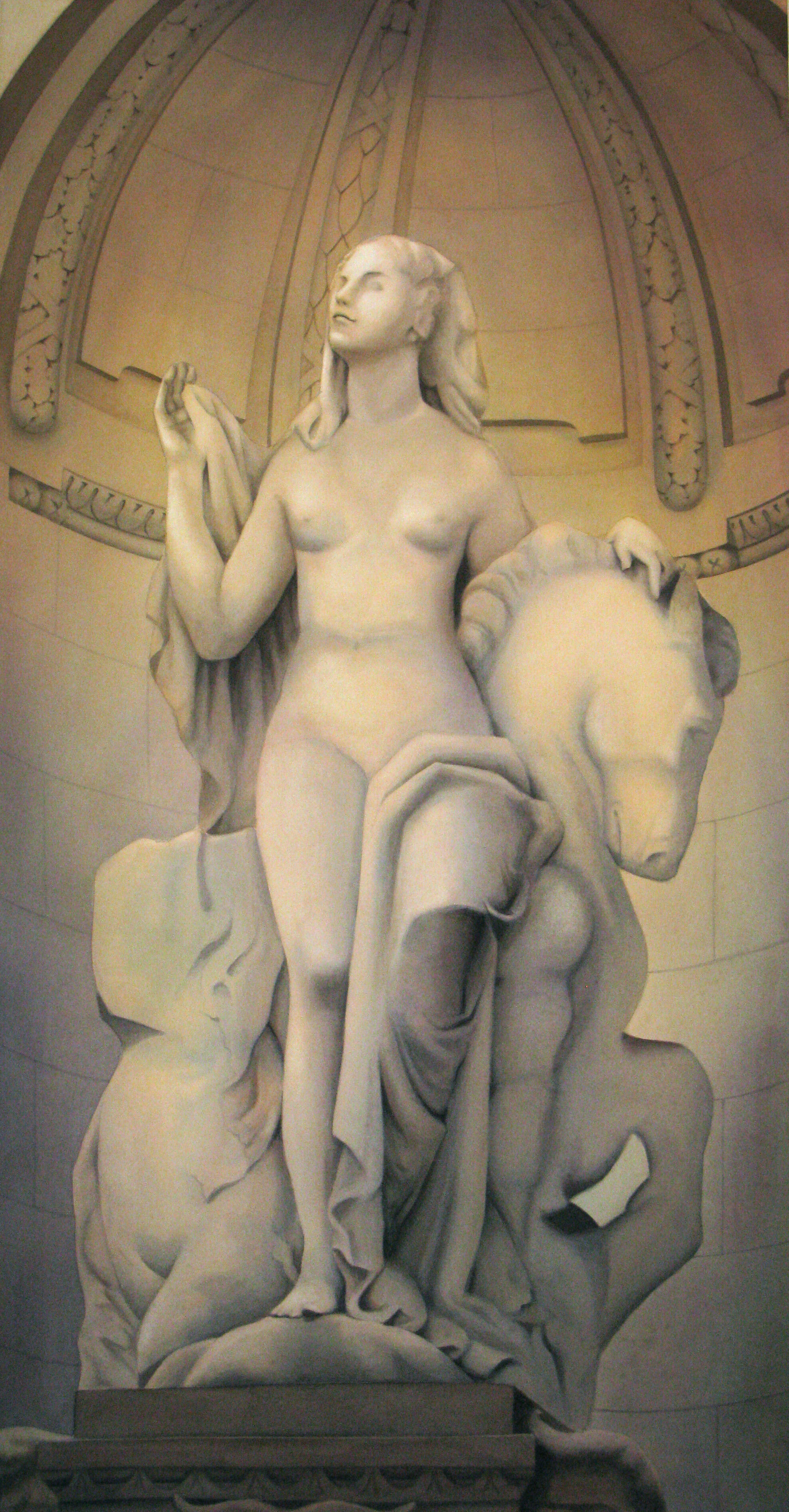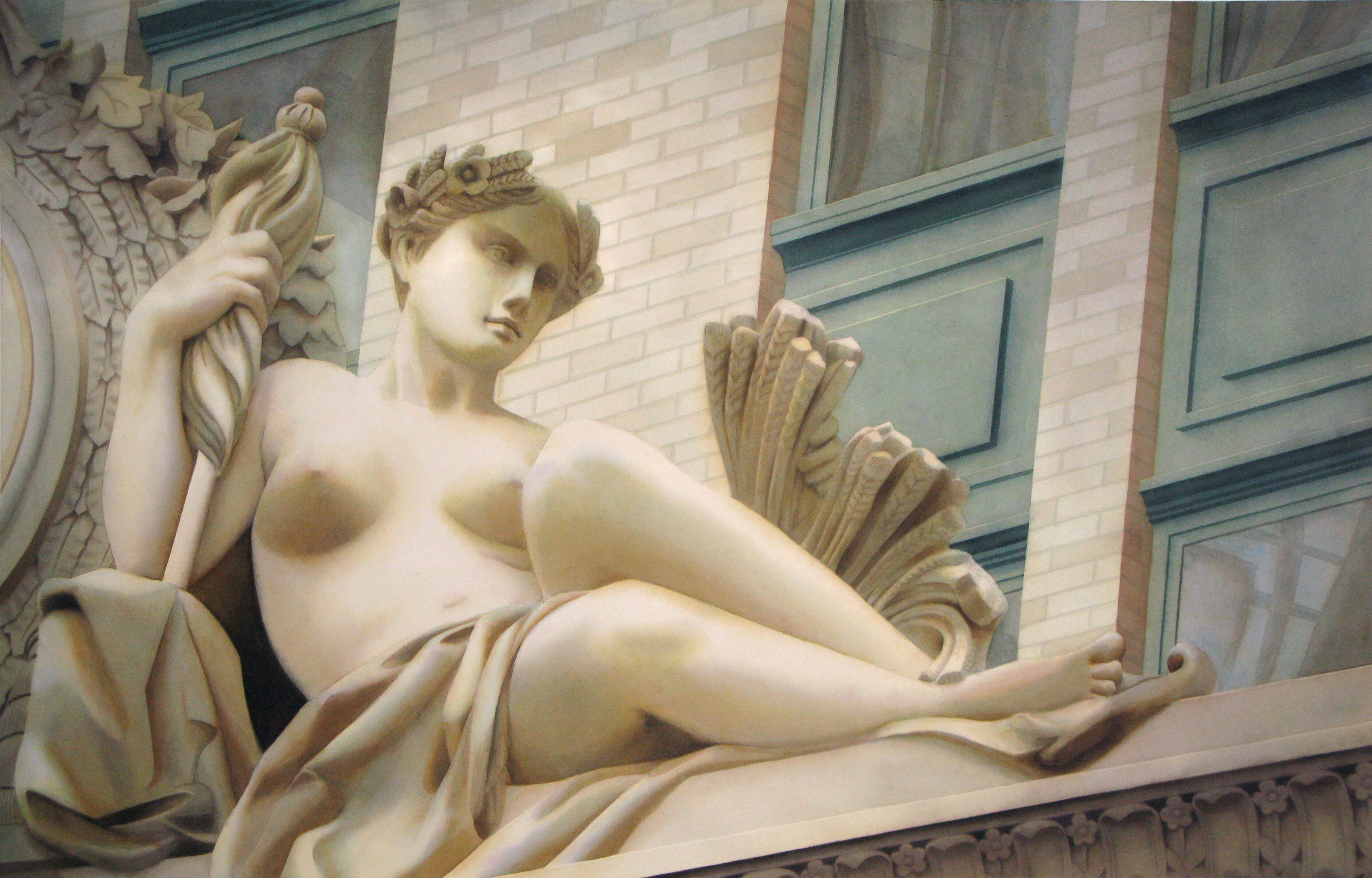 The effigy series is one of the earlier themes I began. It was developed from reflections on my spiritual journey, which I view as the counterbalance to practicality, embodying a soft, feminine energy.In this series, I depict subject as the guardian spirits and muses that I envision watching over New York City.