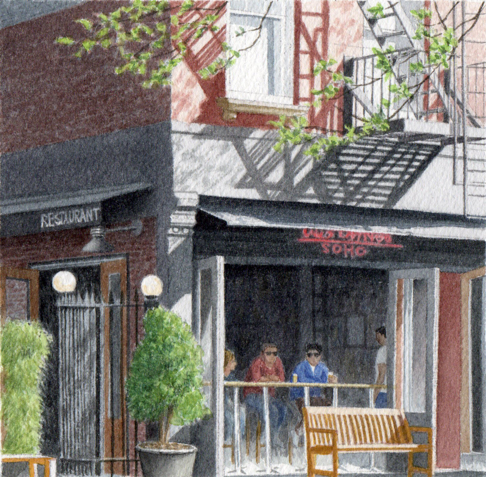 New York City has been my inspiration since I moved here. This series grew from observing its layered character, nature within the city, historic buildings, and the local charm of independent storefronts.